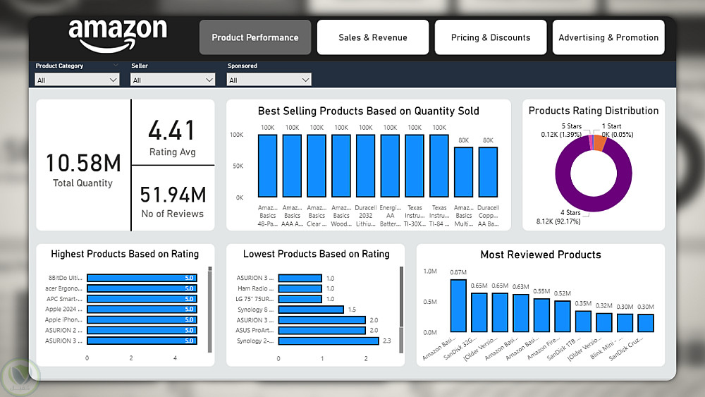 في هذا المشروع، تم بناء لوحة بيانات تفاعلية متكاملة لتحليل أداء مبيعات متجر أمازون باستخدام Power BI، بهدف تحويل البيانات الخام إلى رؤى قابلة للتنفيذ تدعم اتخاذ القرار.