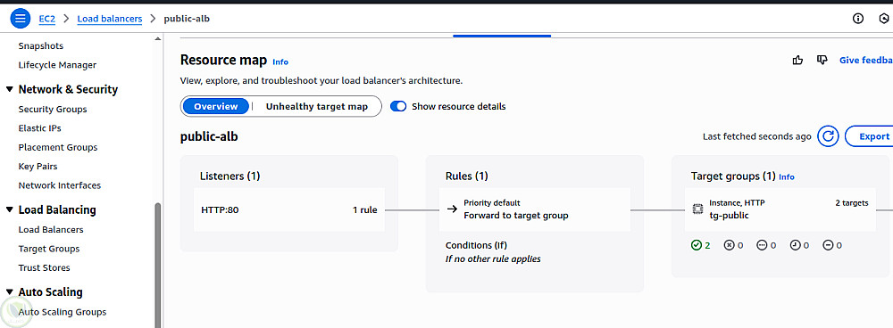 - Private ALB داخلي لتوجيه الترافيك إلى خوادم الـ Apache في الـ Private Subnet.
