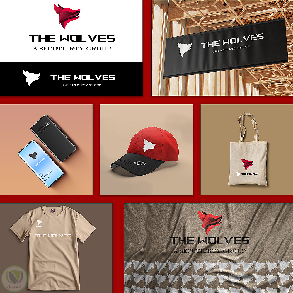 هويه بصريه لشركه اممن باسم wolves تحتوى على موكبس والالوان المستخدمه فى الشعار