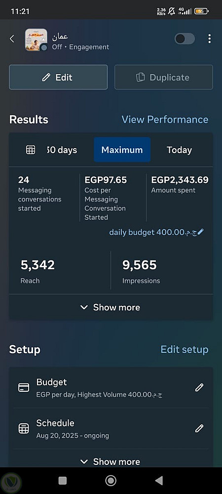 • متوسط تكلفة المحادثة: 97.65 جنيه