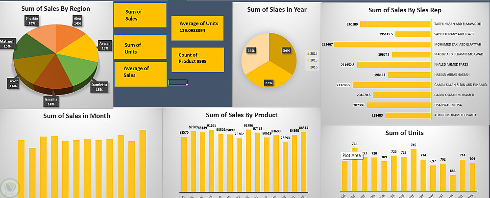 إنشاء مؤشرات رئيسية (KPIs) مثل: إجمالي المبيعات، عدد الوحدات، ومتوسط المبيعات.