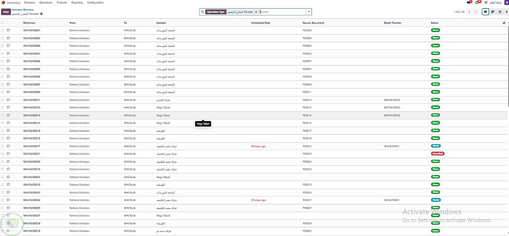 تطوير وانشاء مخازن للشركه ببرنامج الاودو