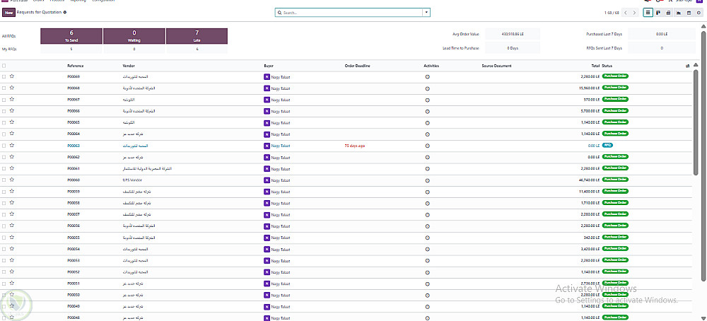 العمل علي موديول المشتريات الخاص ببرنامج الاودو