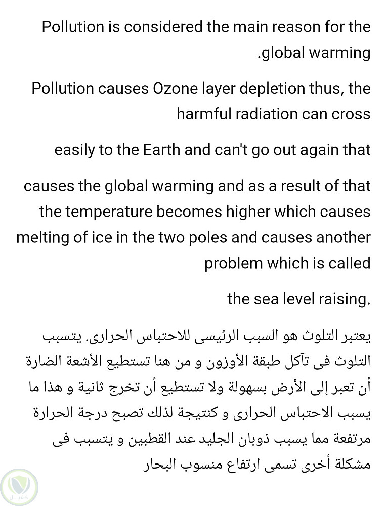 محتوى عن الاحتباس الحرارى بالإنجليزية و ترجمته إلى العربية