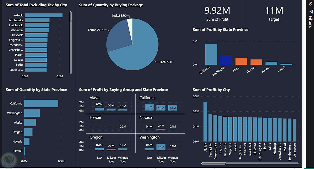 تتكون البيانات من عدة جداول وطريقة ربط الجداول مع بعضها البعض للحصول على أفضل النتائج من معرفة الأماكن التي تحقق أعلى مبيعات ومعدل ربح الشركة والفئة المستهدفة.