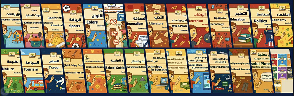 • ابتكرت وأشرفت على 300+ صورة ثنائية اللغة تجسّد موضوعات القواميس السبعة