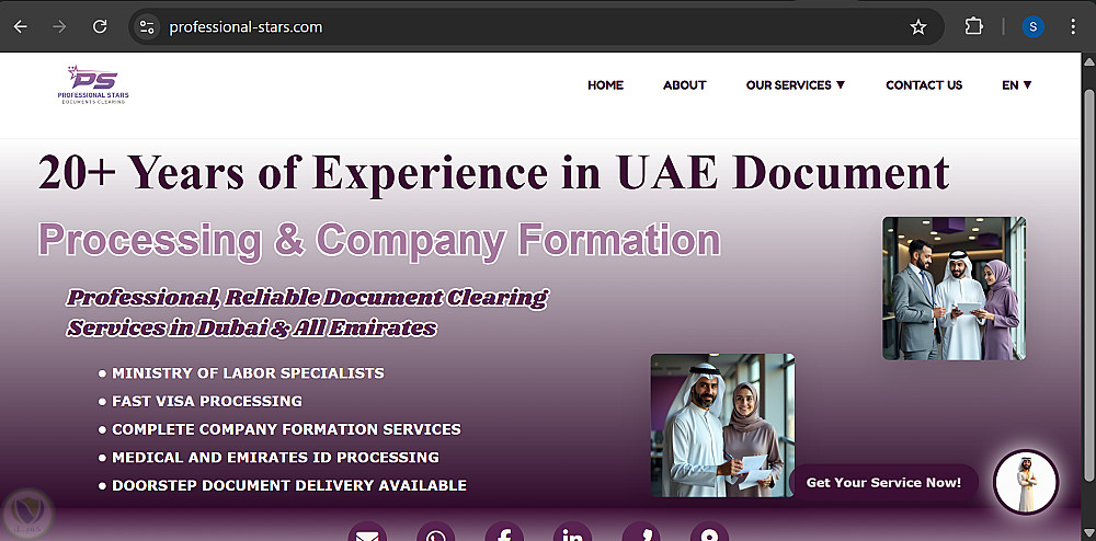 م تطوير موقع Professional Stars ليعرض خدمات الشركة في مجالات التأشيرات، وزارة العمل، تأسيس الشركات، والوثائق الرسمية، بطريقة عصرية وسهلة الاستخدام.