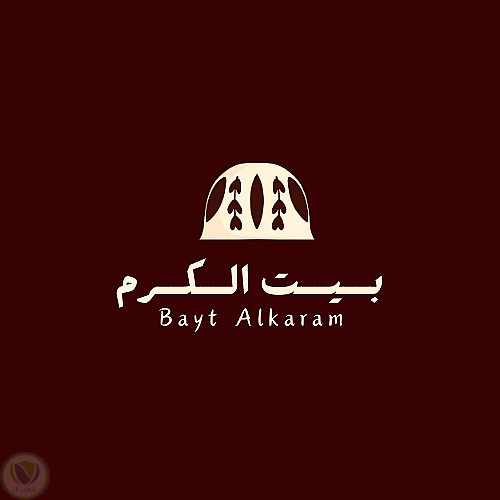 الفكرة: إبراز اسم “بيت الكرم” بخط عربي أنيق مع لمسة إنجليزية بسيطة لاسم “Bayt Alkaram”.