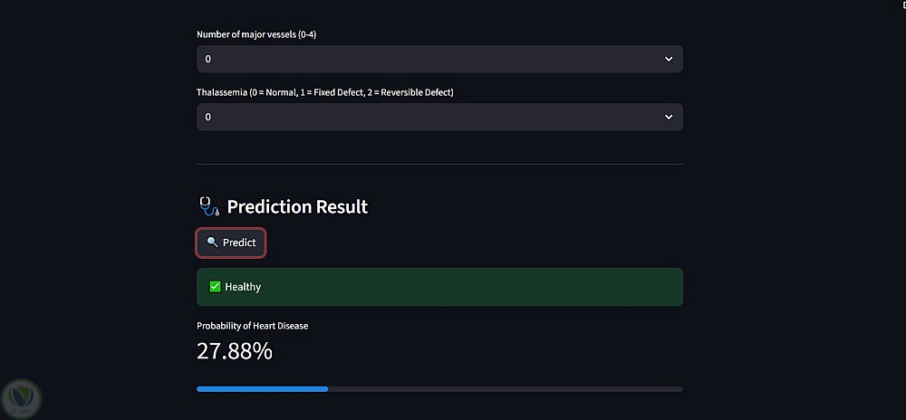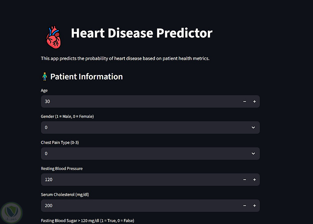 طوّرتُ نظامًا متكاملًا يعتمد على خوارزميات التعلم الآلي (Machine Learning) للتنبؤ باحتمالية الإصابة بأمراض القلب اعتمادًا على البيانات الصحية للمريض.