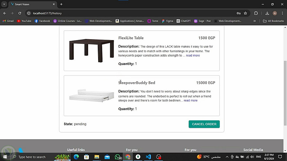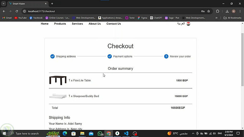 موقع Smart Vision للأثاث (موقع تجارة إلكترونية)