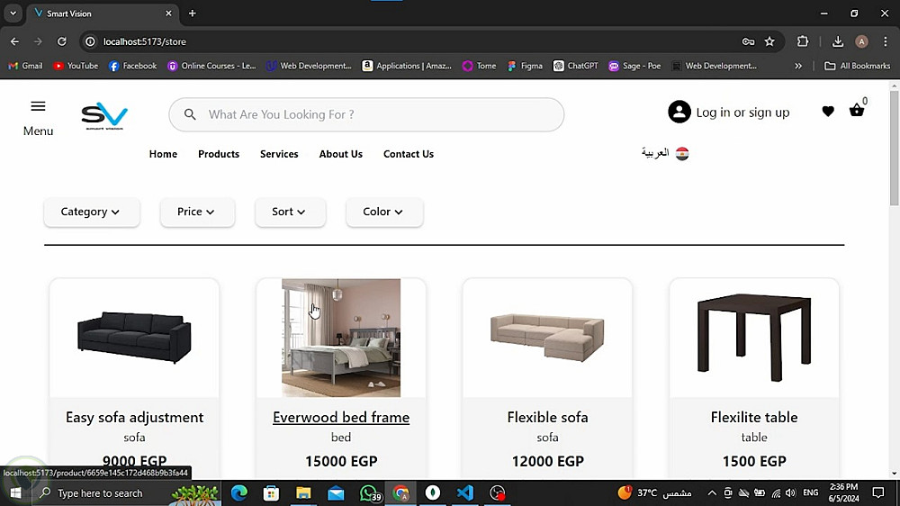 مشروع Smart Vision هو موقع إلكتروني متخصص في عرض وبيع منتجات الأثاث بمختلف أنواعها، مثل الكراسي، الأرائك، الطاولات، الأسرّة، وحدات التخزين، وقطع الديكور.