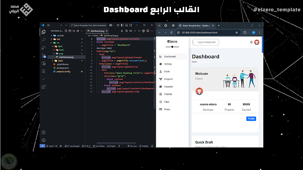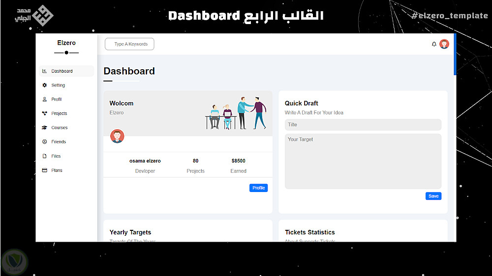 هو عبارة عن dashboard احترافي متكون من عدة صفحات يقدم عدة خدمات. والهدف منه هو تعلم برمجو ال dashboard العالمية
