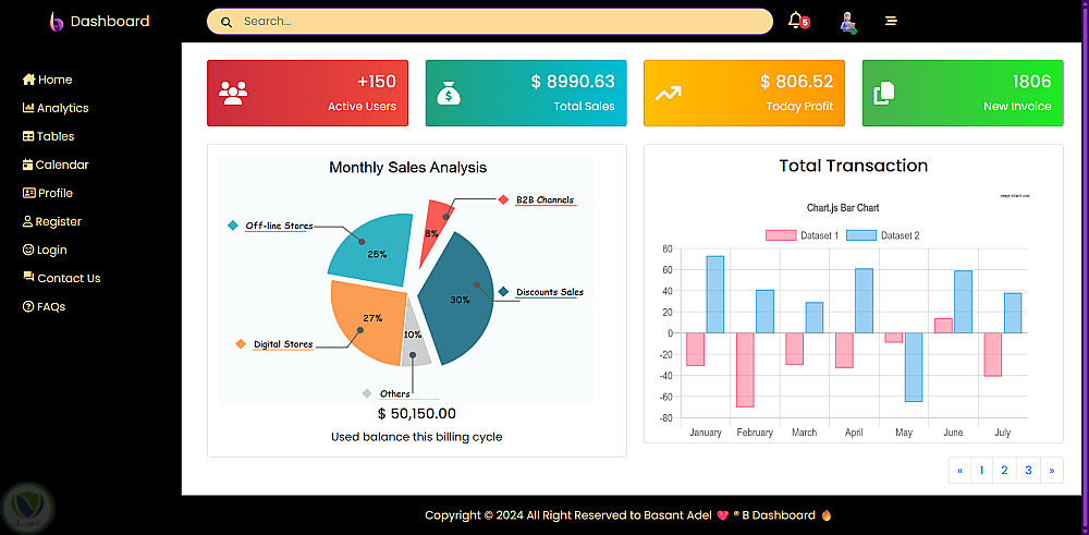 منصّة عرض البيانات الاحترافية Dashboard Website