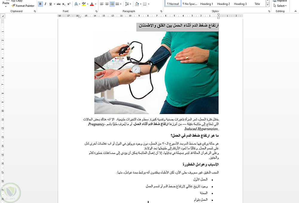مقال طبي مكون من حوالي 500 كلمه عن ضغط الدم للحامل وفقا لقواعد ال SEO