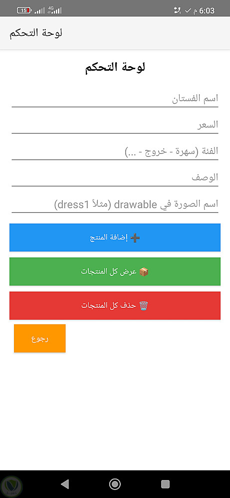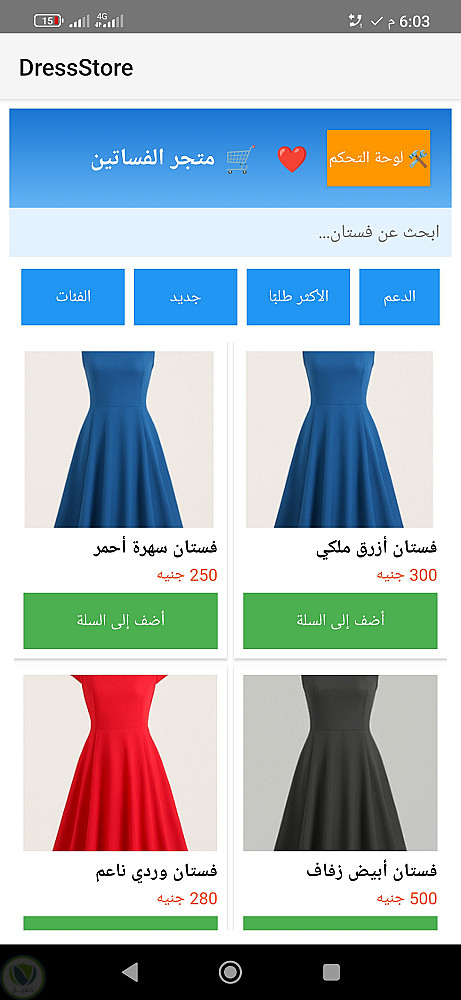 تطبيق متجر الفساتين هو تطبيق أندرويد متكامل وجاهز للاستخدام كمتجر إلكتروني، يتميز بواجهة جذابة وسهلة الاستخدام، مع شبكة عرض المنتجات بشكل منظم، ودعم البحث السريع والتصفية حسب الفئات أو المنتجات الجديدة أو الأكثر طلبًا. يحتوي التطبيق على لوحة تحكم متكاملة لإدارة المنتجات بسهولة، مع إمكانية إضافة صور وأسعار ووصف لكل منتج، وإمكانية وضع المنتجات ضمن فئات محددة. يدعم التطبيق أيضًا إدارة المفضلة والسلة لتجربة مستخدم متكاملة، مع إشعارات وعرض تفاصيل كل منتج عند الضغط عليه. التطبيق مصمم بلغة Java 7 ويعمل على جميع أجهزة أندرويد، مع كود منظم يسهل التعديل، مما يتيح لك تحويله لأي نوع متجر آخر مثل إكسسوارات، إلكترونيات، أدوات منزلية، أو أي منتجات رقمية أو مادية. يمكنك تعديل الألوان، النصوص، الأيقونات، وحتى الهيكل العام للتطبيق ليتوافق مع علامتك التجارية، ما يجعله أساسًا ممتازًا لأي مشروع متجر إلكتروني متكامل دون الحاجة للبرمجة من الصفر. التطبيق أيضًا جاهز لدعم الإعلانات أو التوصيل أو أي ميزات إضافية مستقبلية.