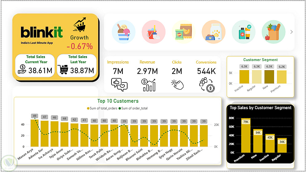 تحليل و عرض أهم مؤشرات المبيعات كإجمالي الربح و معدل النمو و عدد الطلبات.