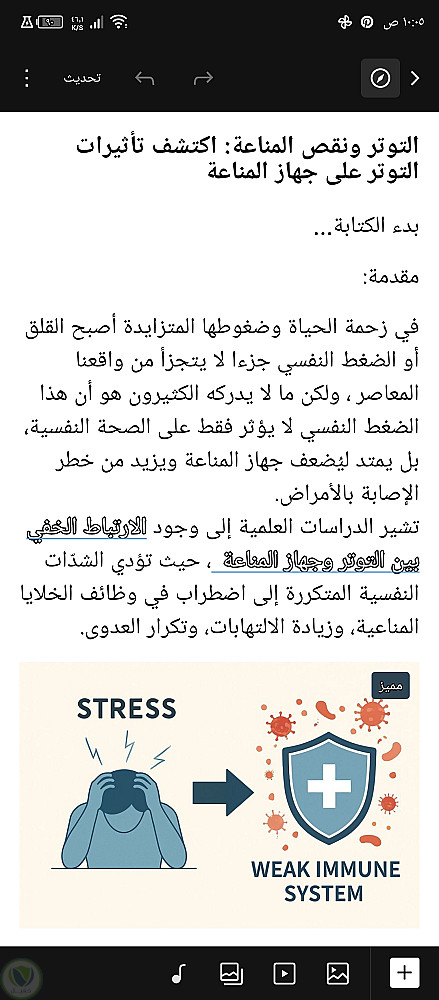 مقال طبي توعوي بعنوان : التوتر ونقص المناعة ىاكتشف تأثيرات التوتر على جهاز المناعة.