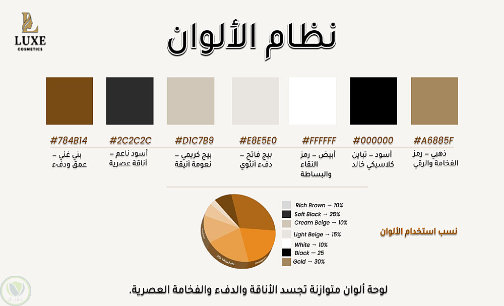 تم تنفيذ المشروع بأسلوب حديث يوازن بين البساطة والفخامة، ويمنح العلامة هوية متكاملة سهلة التمييز والتذكر.