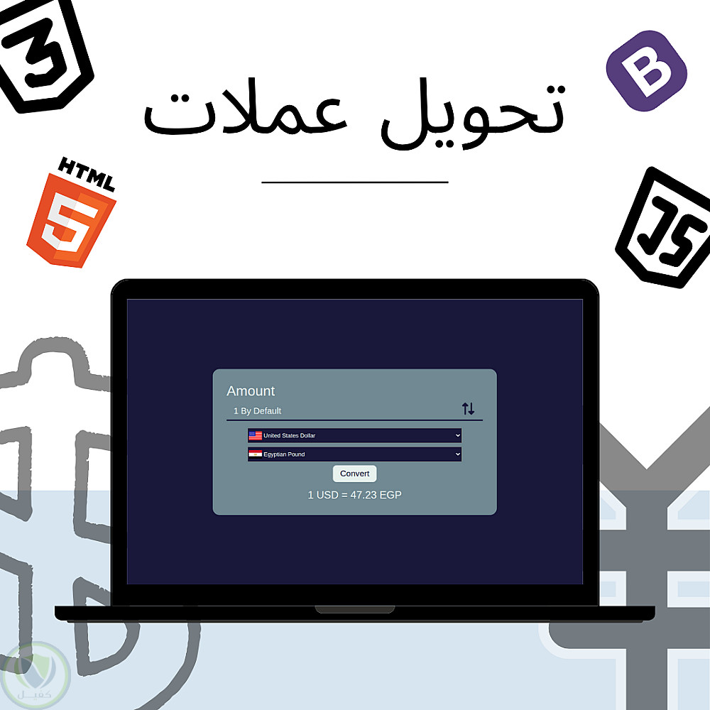 موقع تحويل عملات تم بنائه باستخدام HTML,CSS,Bootstrap,JS