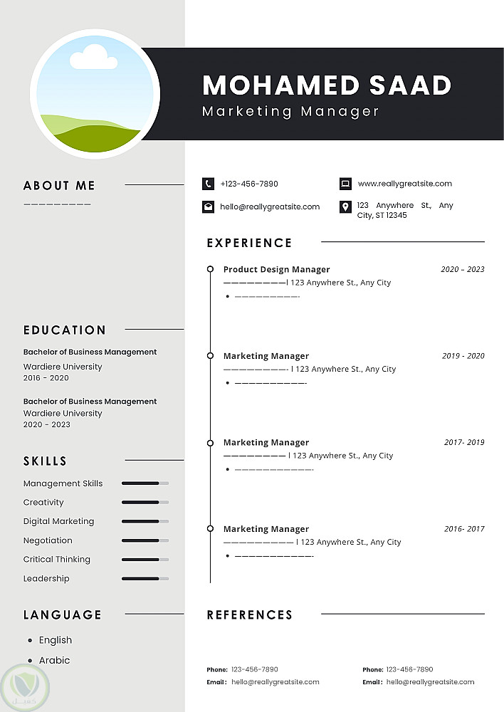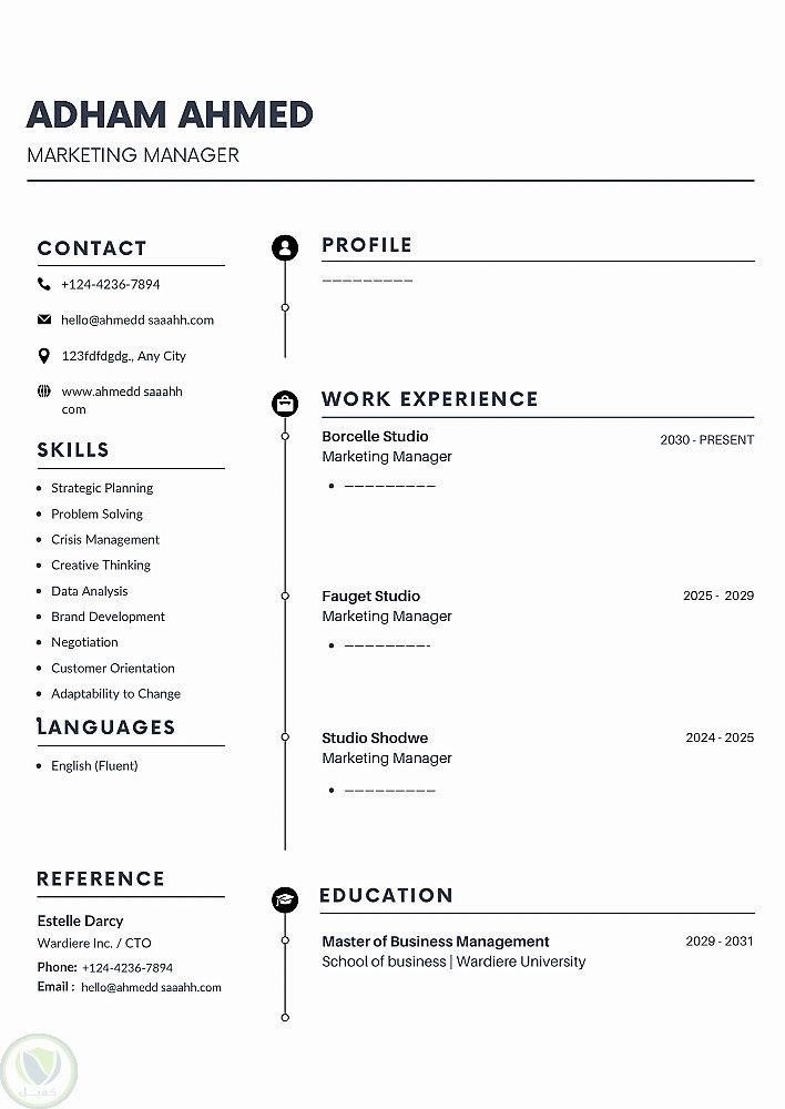 الهيكل مُرتب بعناية ليوصل المعلومة بسرعة، ويترك انطباعًا قويًا لدى جهة التوظيف.
