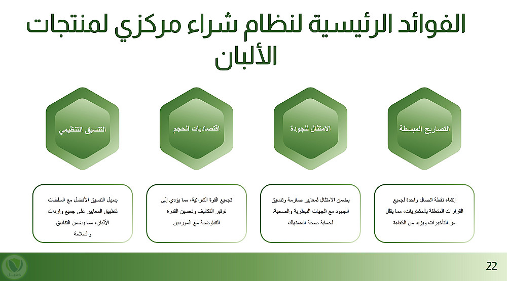 العرض كان مكوّن من 26 شريحة، صمّمته باستخدام PowerPoint وCanva، مع الحفاظ على الهوية البصرية للشركة علشان يطلع التصميم متناسق ويعبّر عن العلامة التجارية بوضوح.