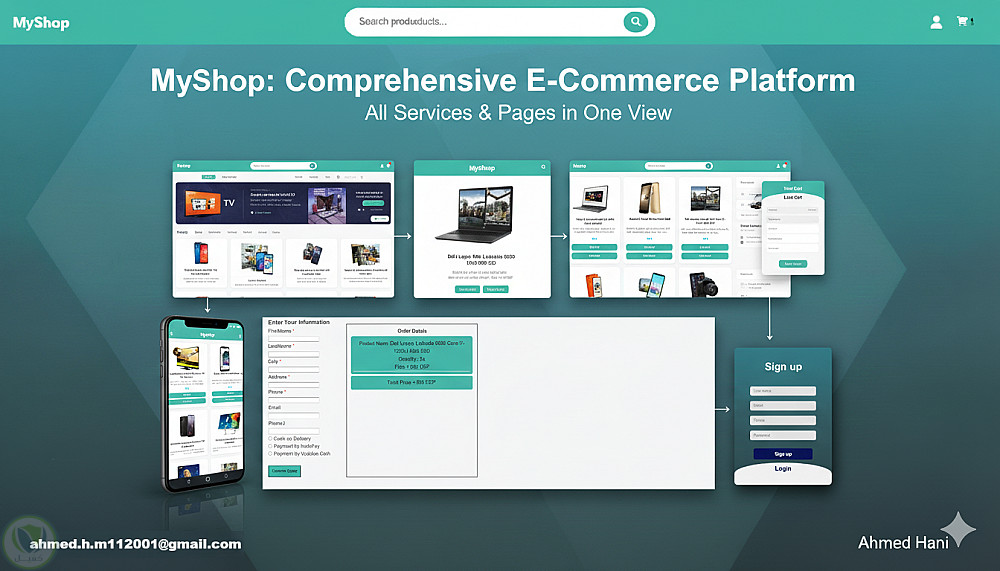 MyShop هو متجر إلكتروني شامل صممته وطورته بالكامل. يهدف المشروع إلى توفير تجربة تسوق سهلة وممتعة للمستخدمين، مع التركيز بشكل خاص على التصميم المتجاوب (Responsive Design) لضمان عمله بسلاسة على كافة الأجهزة (سطح المكتب، التابلت، الهواتف الذكية).