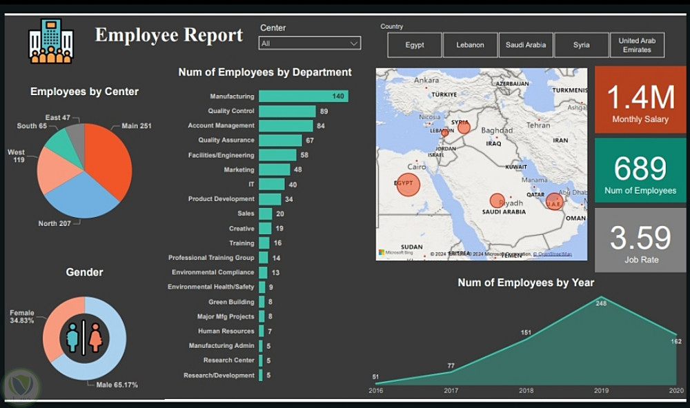 توزيع جغرافي للموظفين يساعد في فهم أماكن تواجد الموارد البشرية.