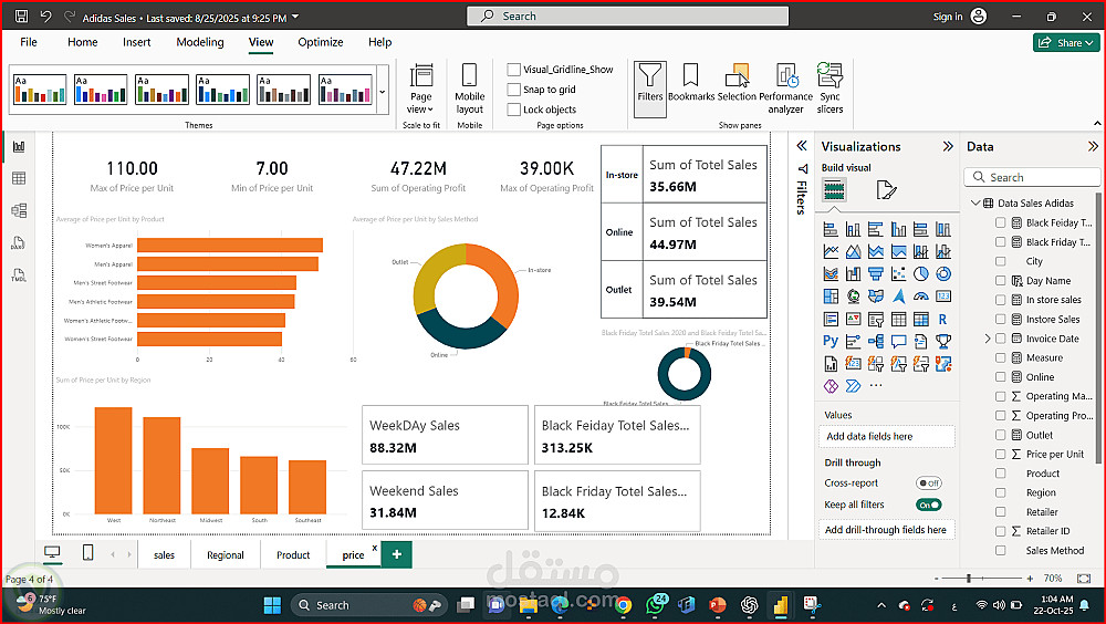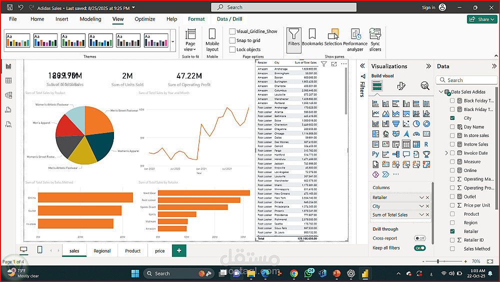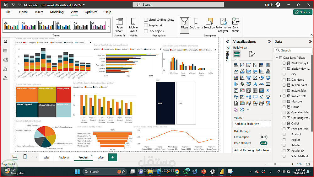 المشروع هو حل متكامل لذكاء الأعمال لشركة أديداس، يقدّم رؤية واضحة ودقيقة عن أداء المبيعات في قطاع التجزئة من 2020 إلى 2021.