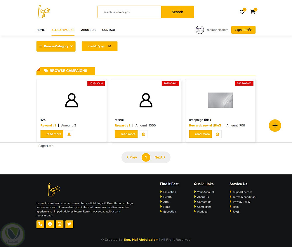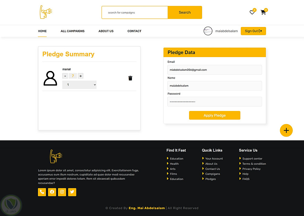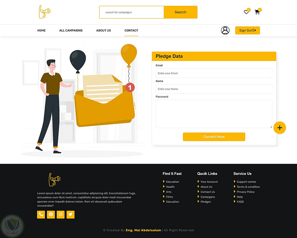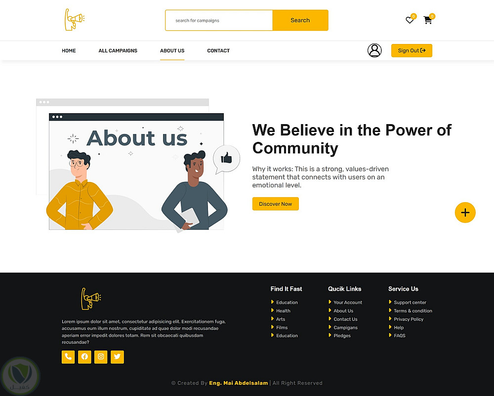 مشروع موقع تفاعلي لحملة رقمية (Campaign Website) تم تطويره كأحد تدريباتي العملية في معهد تكنولوجيا المعلومات (ITI)، باستخدام HTML وCSS وJavaScript وJSON Server.