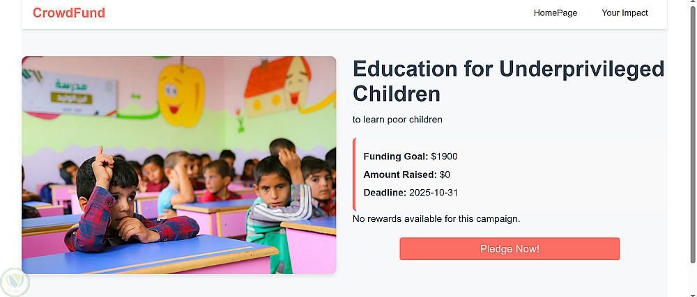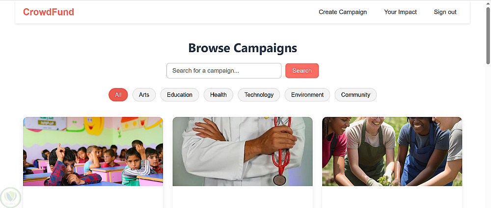 قمتُ بتطوير منصة تمويل جماعي (Crowdfunding Platform) لمساعدة المستخدمين على إنشاء ودعم مشاريع متنوعة.