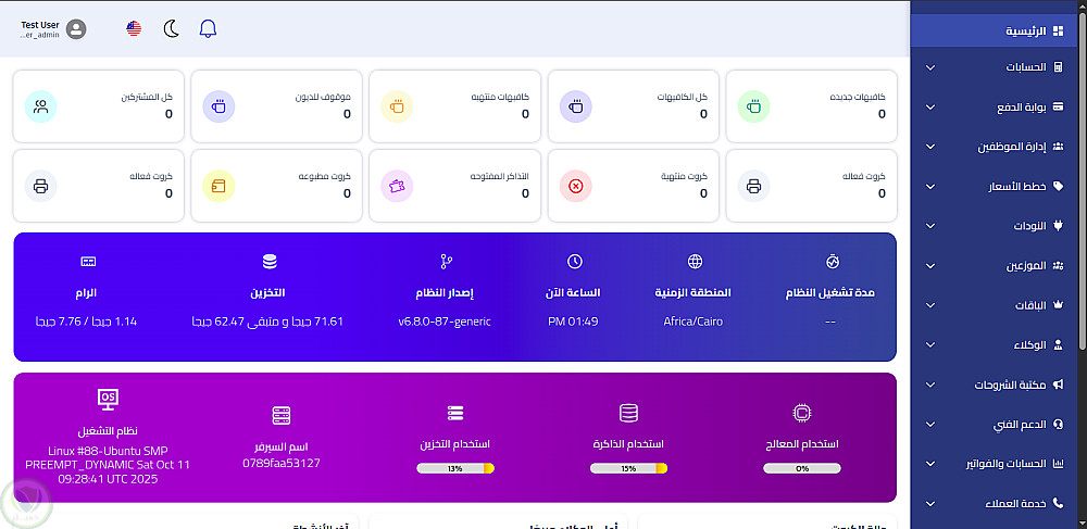 وتم رفع السيستم على استضافة VPS كلاً من الباك اند + الفرونت اند