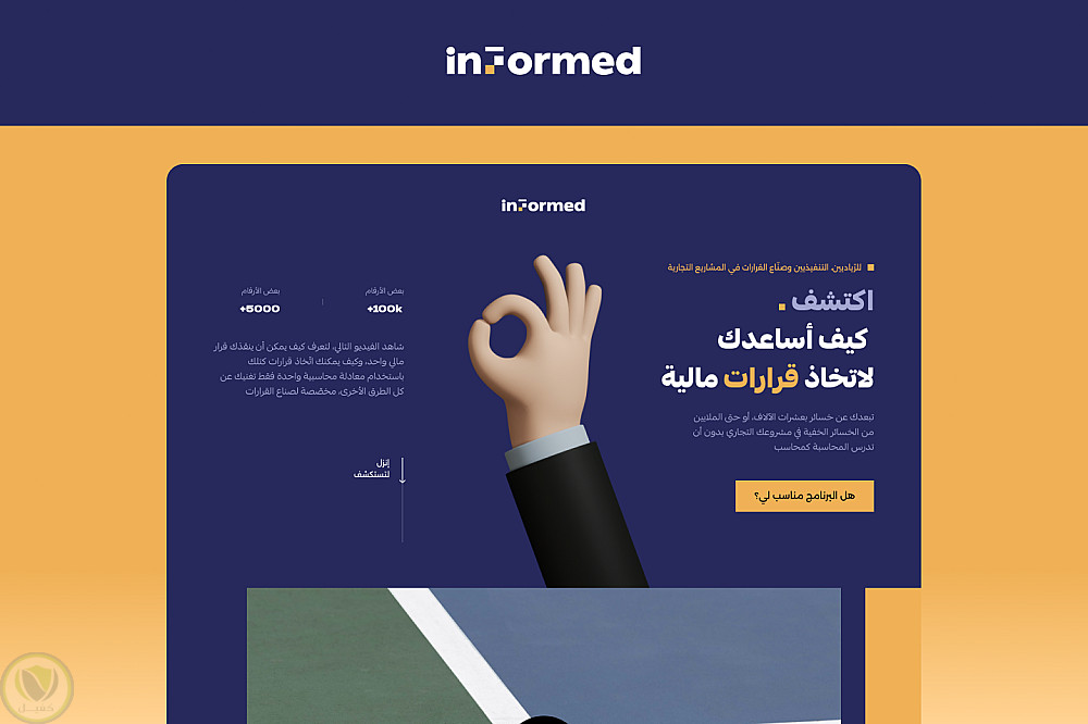 النتيجة: تصميم يدمج بين البساطة والاحترافية ليعكس القيمة الحقيقية لموقع Informed كتجربة تعليمية مختلفة.
