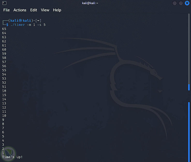 هذا المشروع سكربت بسيط يقوم بإنشاء عد تنازلي بناءً على الوقت الذي يحدده المستخدم (بالدقائق والثواني) عن طريق خيارات سطر الأوامر.