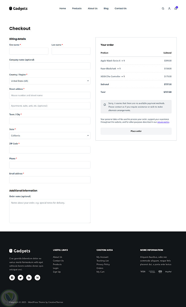 تم تنفيذ مشروع Gadgets Store وهو متجر إلكتروني عصري تم بناؤه باستخدام WordPress + WooCommerce لبيع الأجهزة الإلكترونية والملحقات التقنية.