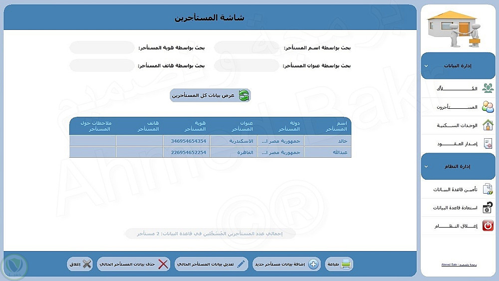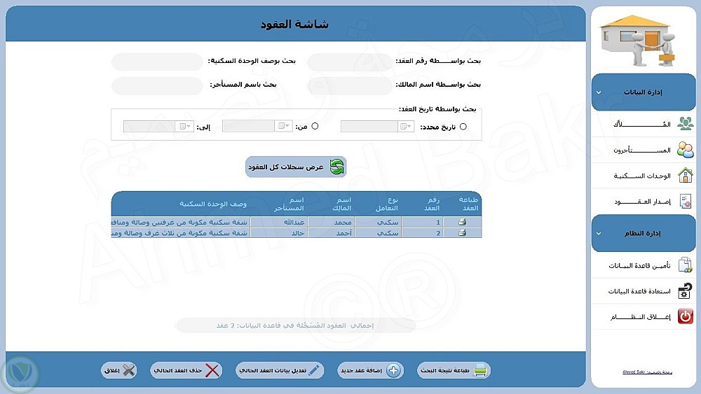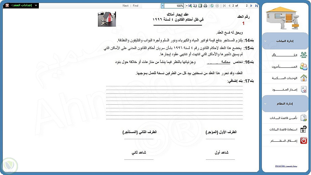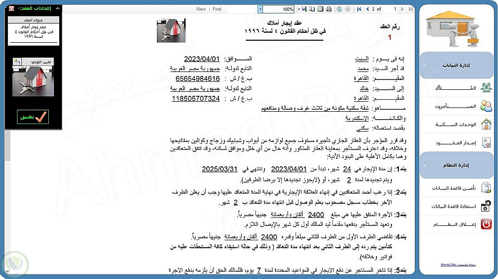 >>> إدارة بيانات عقود الإيجارات وطباعتها وتصديرها إلى PDF أو Excel أو Word.