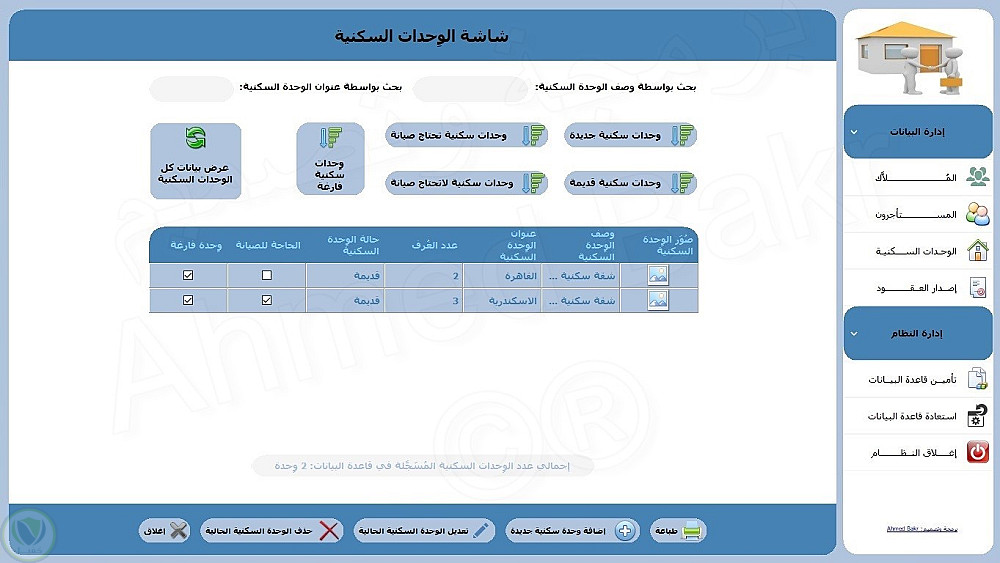 >>> إدارة بيانات الوحدات السكنية.