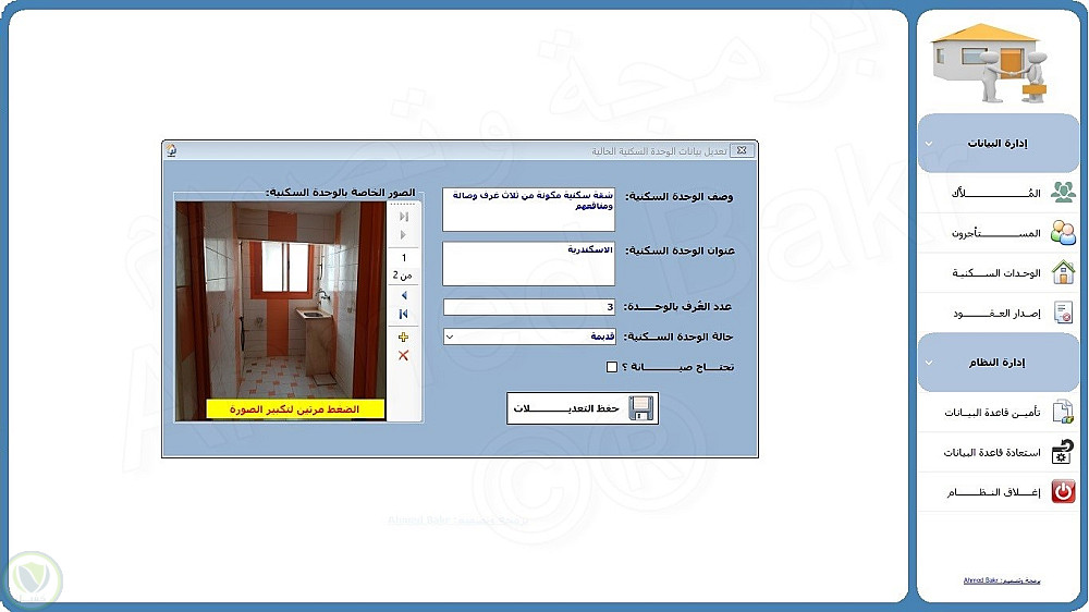 >>> إدارة بيانات صور الوحدات السكنية وإمكانية إضافة عدة صور في نفس الوقت.