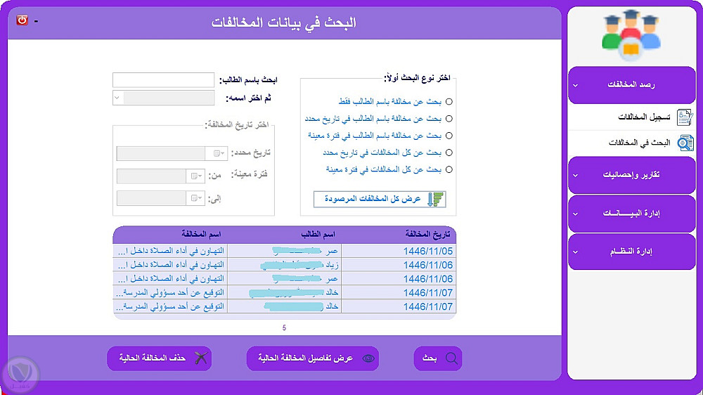 نظام سطح مكتب لرصد المخالفات السلوكية للطلاب