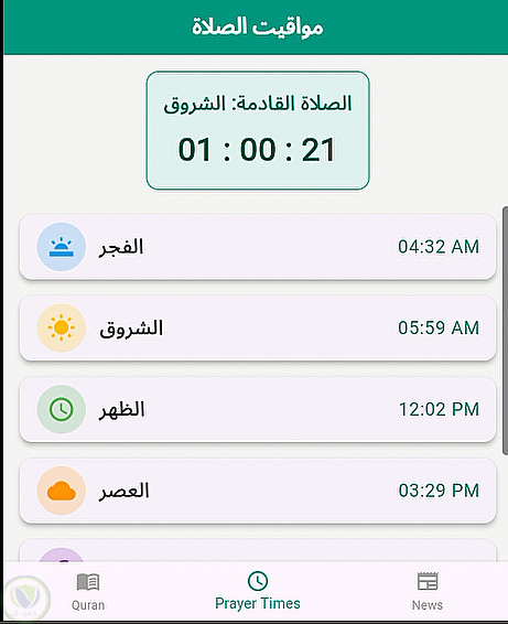 قمت بتطوير تطبيق القرآن الكريم ومواقيت الصلاة يعرض: