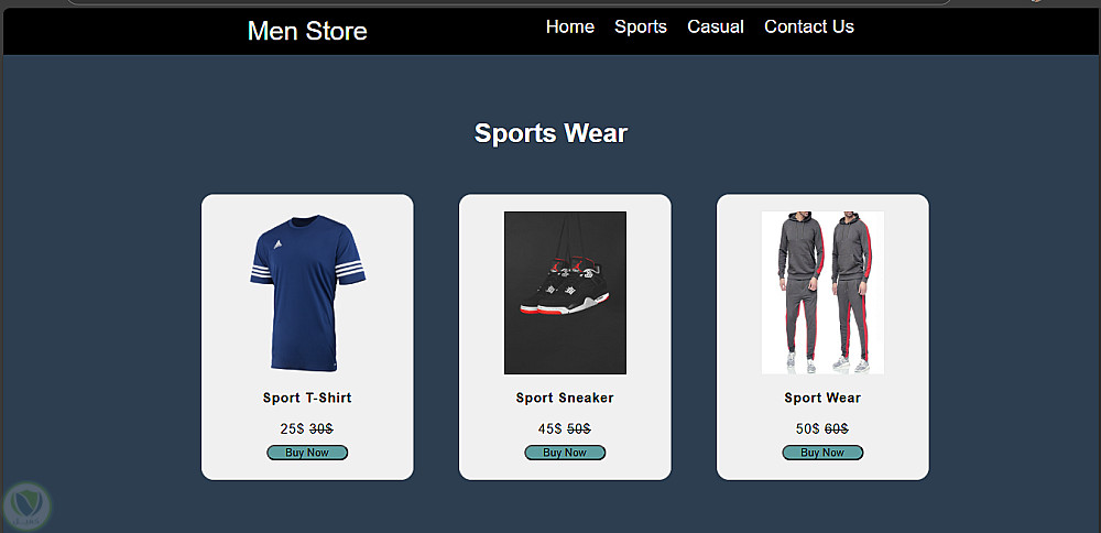 يحتوي على قسم رياضي وقسم كاجوال لعرض المنتجات بطريقة منظمة وسهلة التصفح.