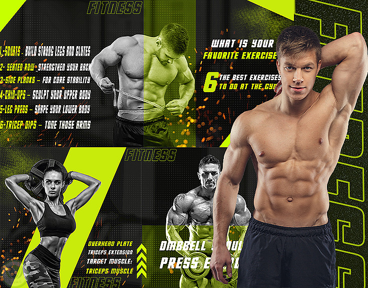 يعتمد التصميم على صور عالية الجودة لعارضي اللياقة البدنية تُظهر تفاصيل العضلات وتُبرز روح التحدي والتحفيز، مع دمج بصري متقن بين النصوص والعناصر الرسومية. كما تم توزيع المحتوى بطريقة مدروسة تُسهّل قراءة التمارين وتشدّ انتباه المتابع، ما يجعل التصميم مناسبًا للنوادي الرياضية، المدربين الشخصيين، وبرامج التدريب عبر الإنترنت.