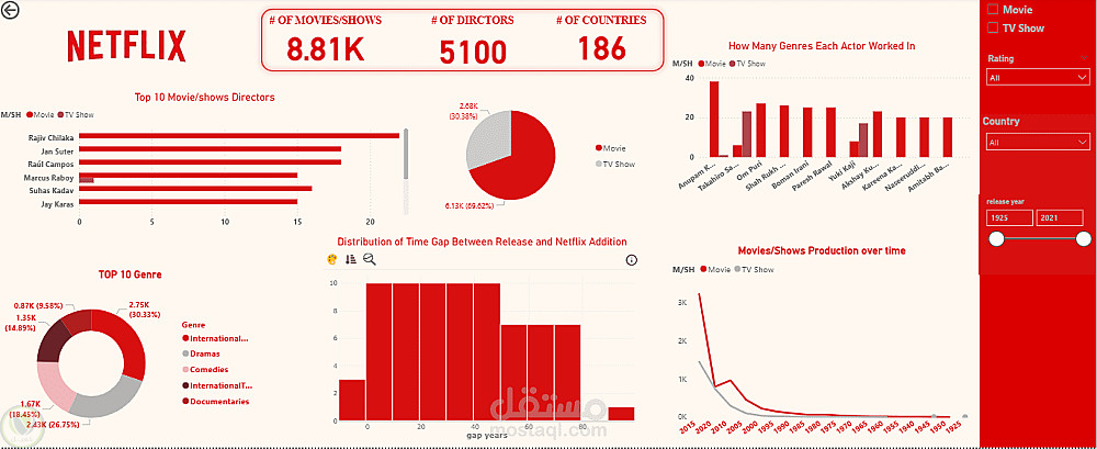 عرض وتحليل بيانات أفلام ومسلسلات Netflix عبر Power BI Dashboard