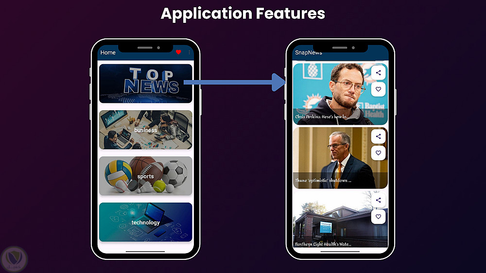 "SnapNews" هو تطبيق يقدّم أحدث الأخبار من واجهة برمجة مباشرة Live API بطريقة تفاعلية وسهلة للمستخدم، ويتضمّن المزايا التالية:
