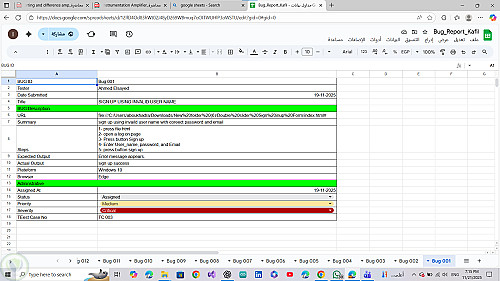اختبار يدوي لصفحة تسجيل دخول