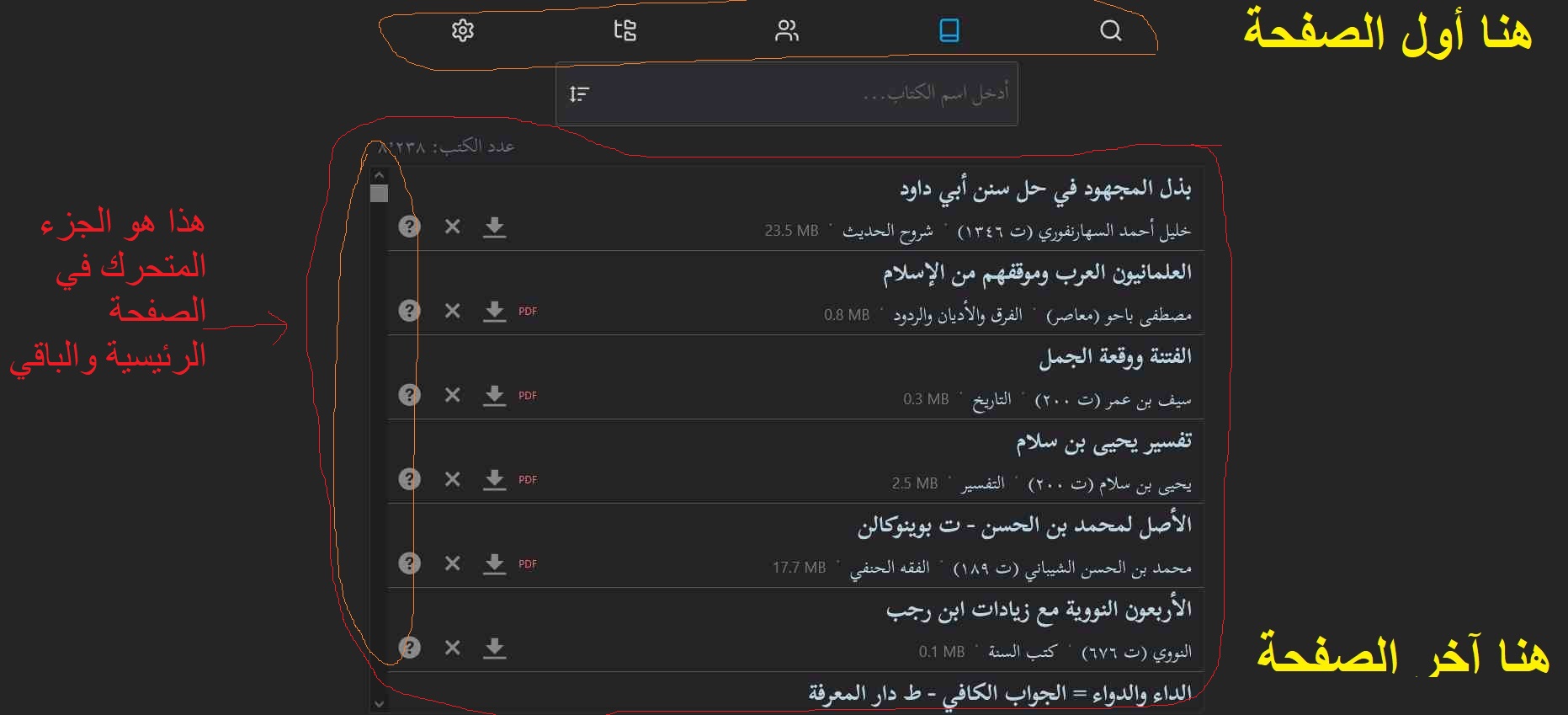 - يتميز بالبحث السريع في محتوى الكتب وفي أسماء الكتب وفي المؤلفين