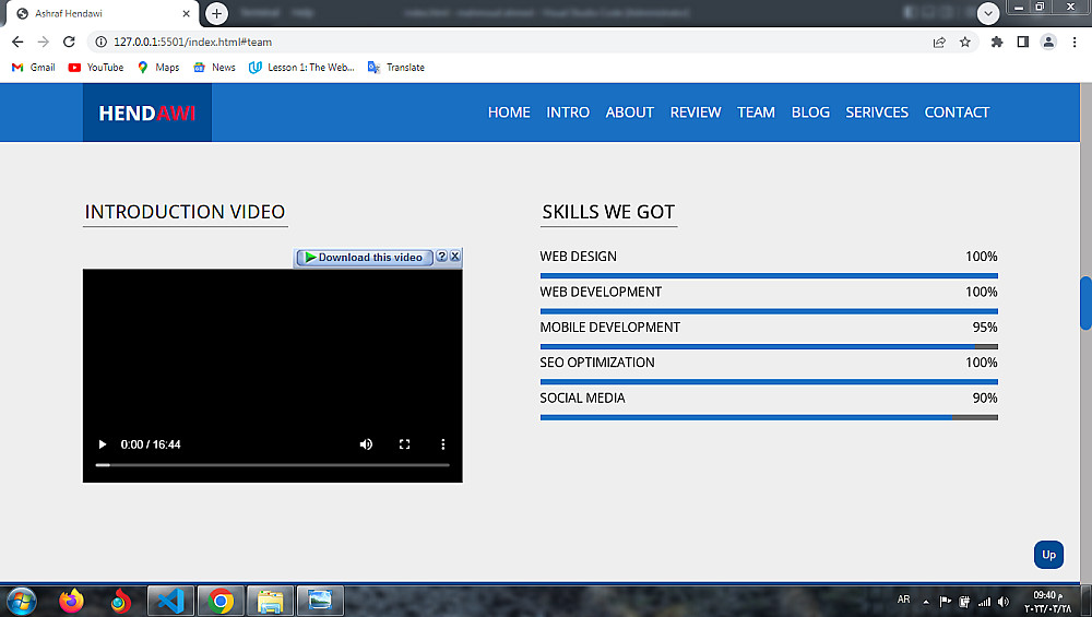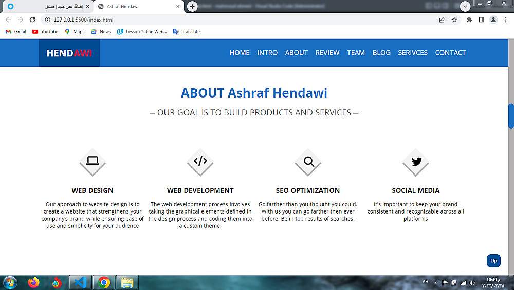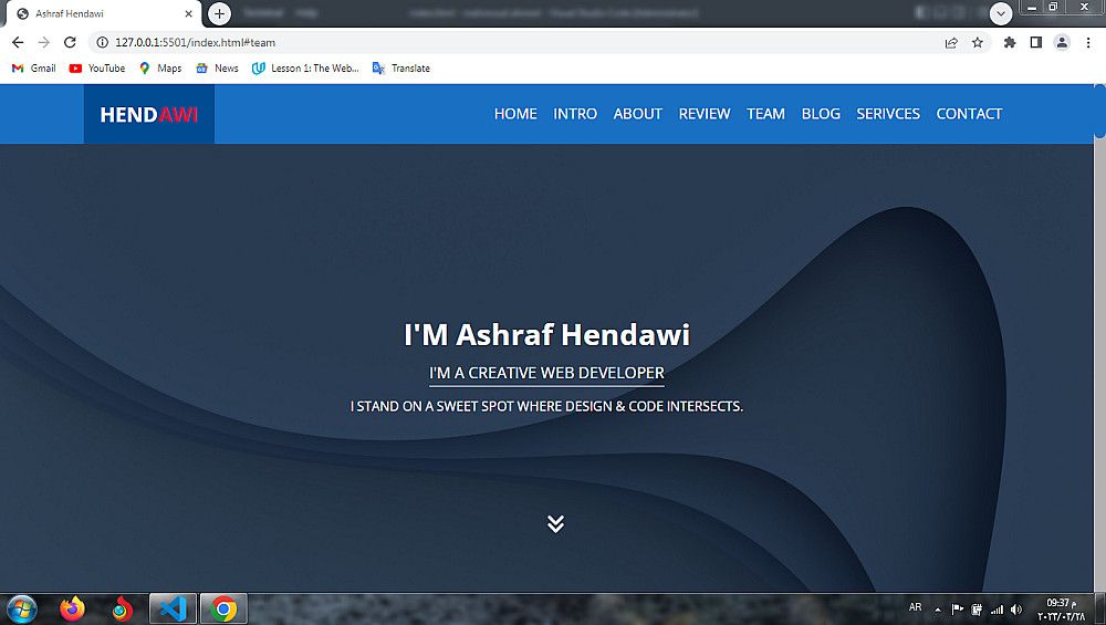 هذا الموقع عباره صفحه واحدة موقع شخصي protfolio تم تصميمه بطريقه اخترافيه باستخدام لغات HTML CSS Javascritp bootstrap5