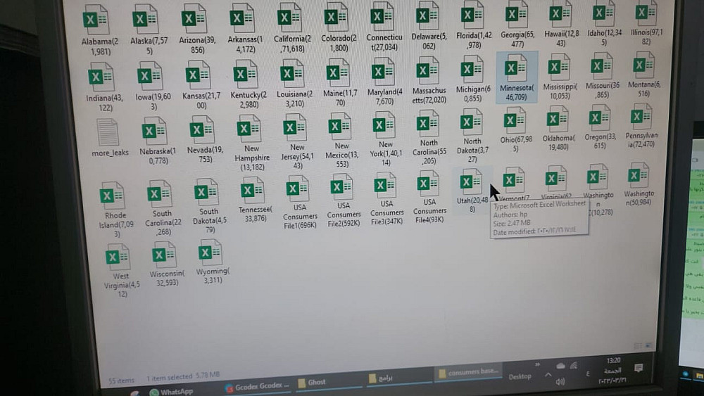 داتا امريكا عبارة عن 50 شيت ملف مضغوط شيت اكسل
