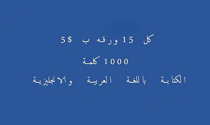 كتابة 15 صفحة بسعر 5 دولار للملفات العربية والانجليزية بحيث لاتتعدى 1000 كلمه