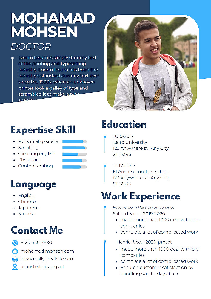 ساصمم السيرة الذاتية الخاصه بك بطريقة الانفوجرافيك بجودة ممتازة واحتلرافية