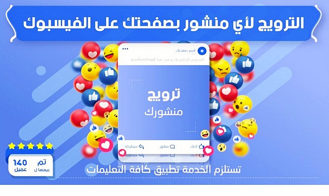 سأقوم بالترويج لأي منشور على صفحتك بفيسبوك إعلان رسمي ممول من خلال نظام فيسبوك الإعلاني لترفع مستوى التفاعل مع منشورات صفحتك ، يمكنك تصميم وكتابة معلومات سلعتك أو منتجك أو خدمتك ومن ثم الإعلان عن المنشور من خلال هذه الخدمة التي حازت رضى وإعجاب كل من طلبها بتقييم 100% ولله الحمد .